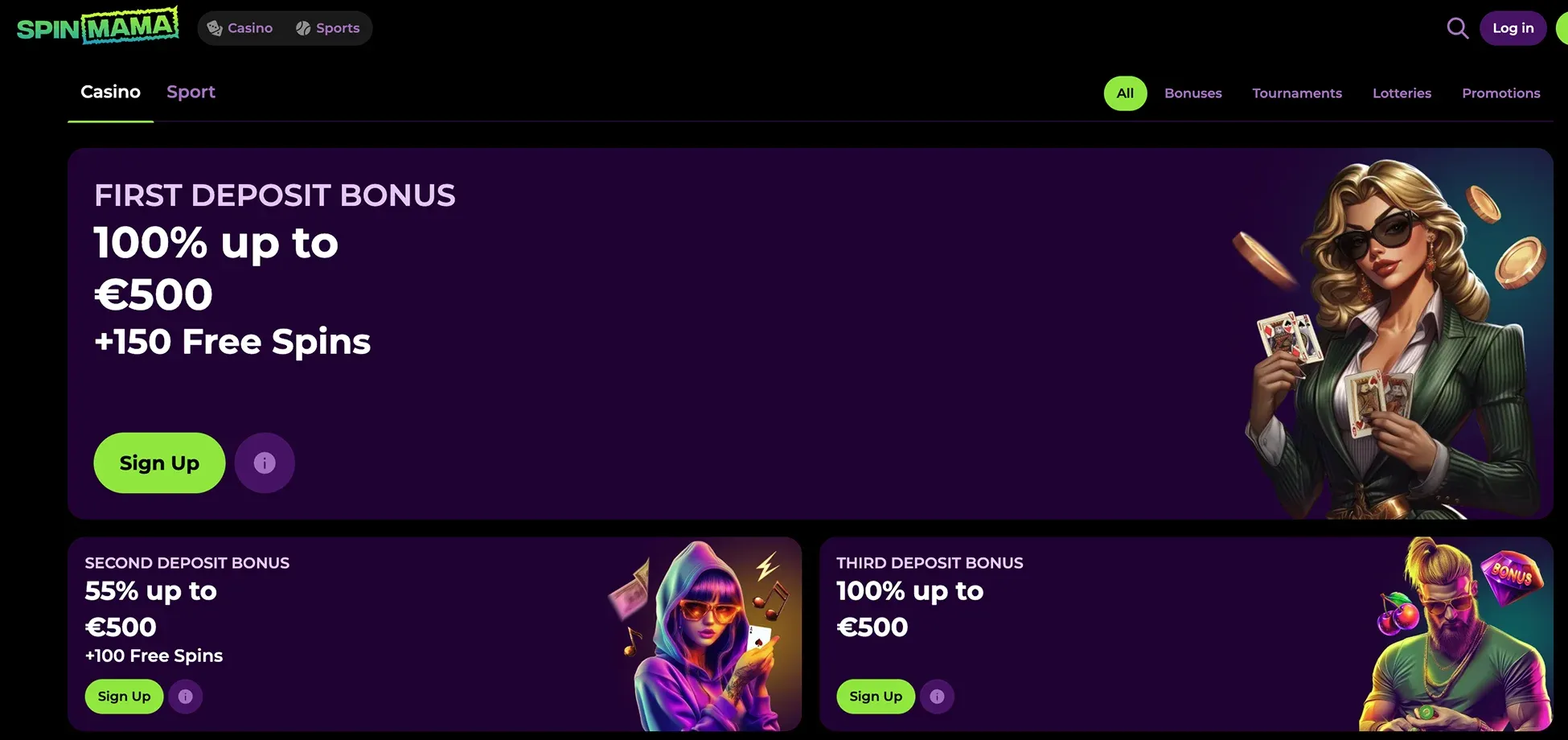 Spinmama live casino brings the authentic casino experience directly to your screen with real dealers streaming in real-time. You can interact with professional dealers and other players while enjoying games like roulette, blackjack, and baccarat. All games are powered by leading software providers to ensure fair play and HD quality streaming.